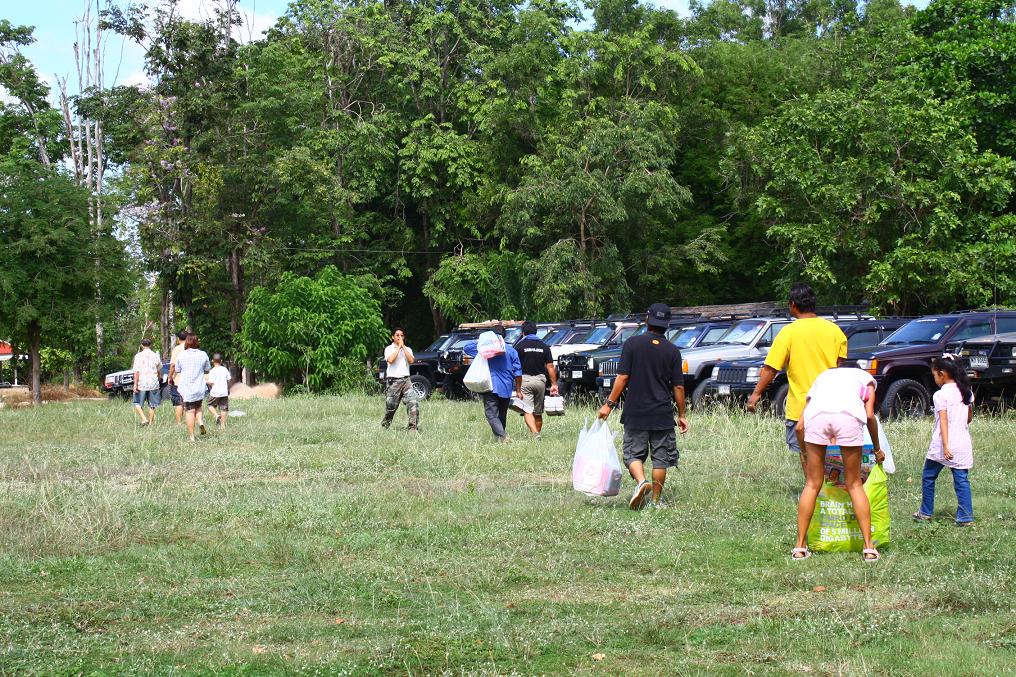 08.00น. นำของที่จะบริจาค จัดขบวนพร้อมออกเดินทาง