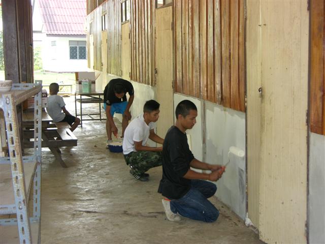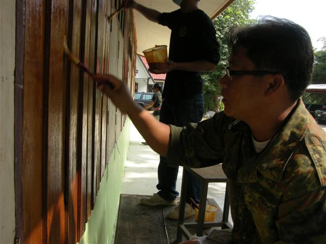 ทีมงานใส่ลาย ป้ายสี อาคารเรียนในวันที่ 10 ธันวา ครับ