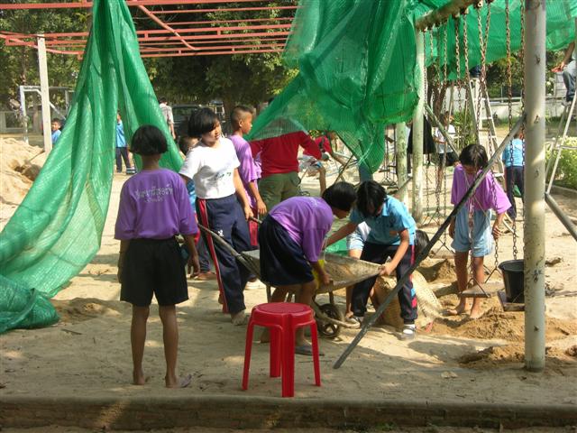 - สิ่งที่เตรียม แปรงทาสี หน้า ใหญ่ กับหน้าเล็ก อย่างละอัน เพราะกิจกรรมหลักคือทาสีอาคารไม้และการซ่อมบำรุงสนามเด็กเล่นครับ