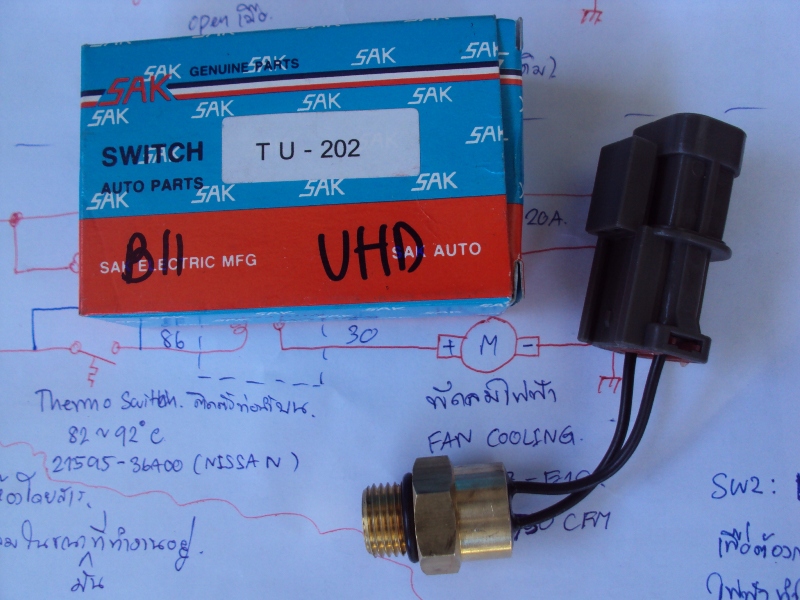 งง ขึ้นอยู่กับ วาวล์ ได้อย่างไร....ขอ visa จากนู๋ต่ายกลับไปถามน้องตาสีฟ้าใหม่ซิ อิอิ เค้าเป็นหน้าcontact ภายในเป็น NO ( normally open) การท่ำงานคือเมื่ออุณหภูมิถึง เช่นเมื่อได้ 90 จะเป็น วาจรปิด หรือ ต่อวงจร ปกติจะต่อสายไฟของมอเตอร์ให้ลงดิน หรือตัวถังรถ คือได้ครบวงจร พัดลมทำงานไง อิอิ.... แกล้งไม่รู้จะได้มีโอกาสไปถามน้องเค้าอีกที อิอิ