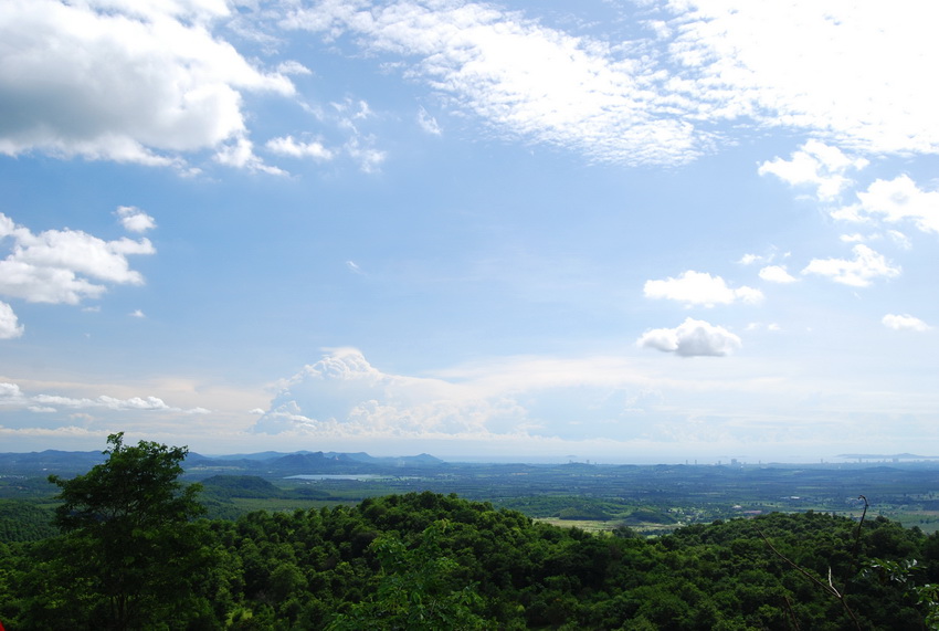 รูปนี้ มองจากซ้ายไปขวา....สัตหีบ...บ้านอำเภอ(เห็นเขาชีจรรณ์).....หาดจอมเทียน......พัทยา....และโรงโป๊ะ