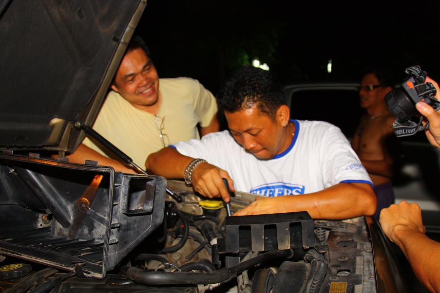โห้.........พอแล้วพี่ มันใหญ่เลย นะครับ ผมไม่ได้ทำอะไรเลย แค่ถอดน๊อตเฉยๆ พี่สมคิดนั้นแหละต้องสละเลือดที่นิ้ว 5555..........พี่มีนแว่นติดท่อไอเสียออกไม่ได้ขาเข้าหล่อเชียว ขาออกคนละคน 555 แต่แบบนี้เขาเรียกฝีมือ ฝีมือ