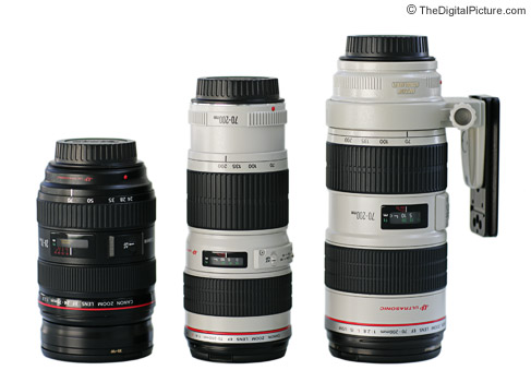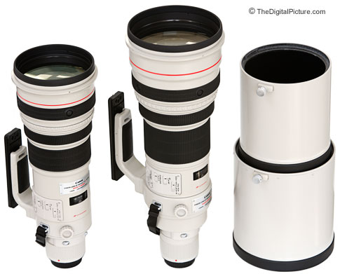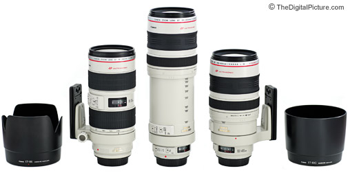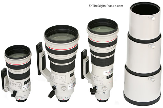 The above picture shows the Canon EF 70-200mm f/2.8 L IS USM Lens (left) compared to the Canon EF 100-400mm f/4.5-5.6 L IS USM Lens extended and retracted along with their lens hoods. Both lenses have Wimberley P20 Lens Plates mounted on their tripod rings. Canon L lenses generally come with a lens hood included.