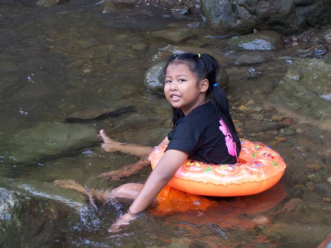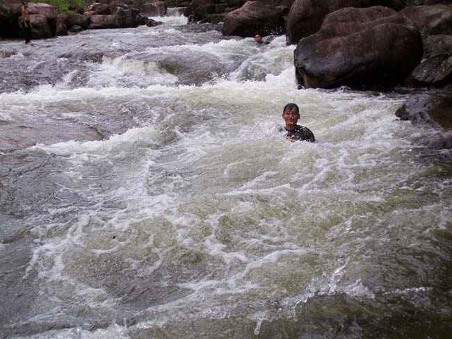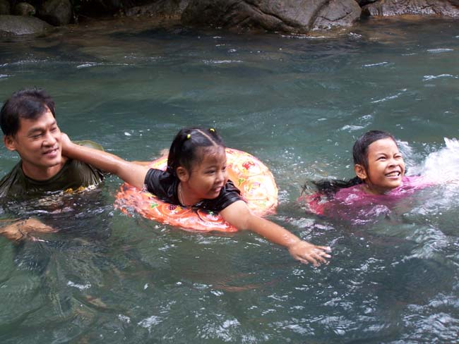 เจ้าสไลเดอร์ที่ว่านี้อยู่ น้ำตกธารทิพย์ ค่ะ หลังจากเล่นน้ำตกธารทิพย์ได้สักพักยังไม่หนำใจ ย้ายไปสระมรกต.....เอาเข้าไป....แช่น้ำกันท้างงงงงวัน....