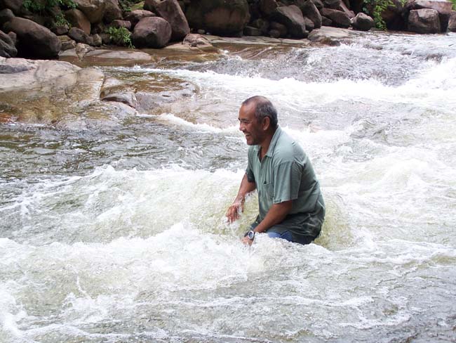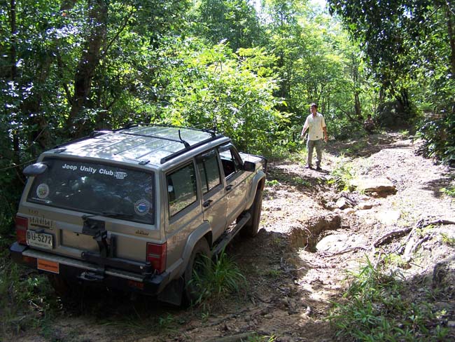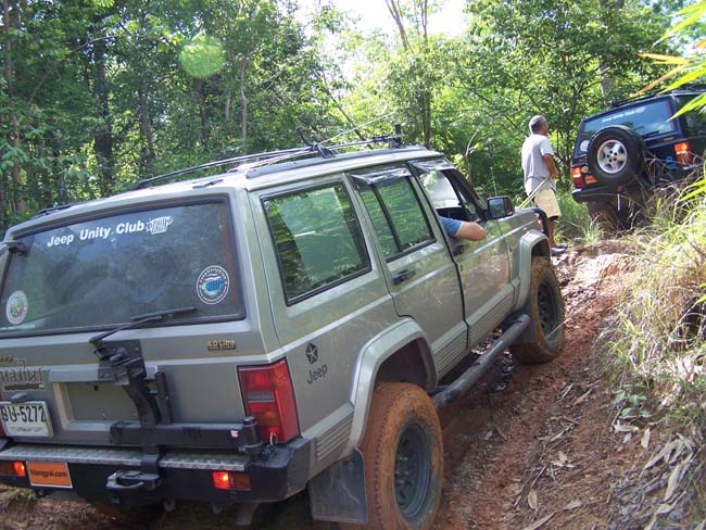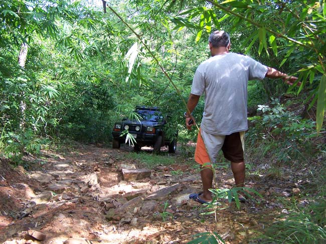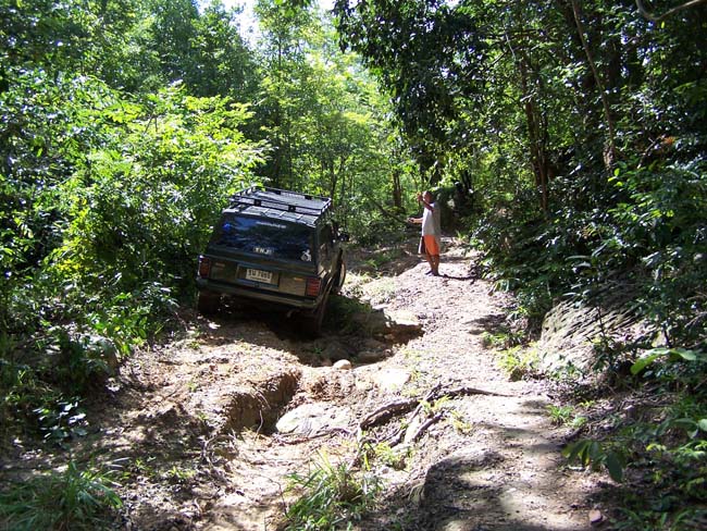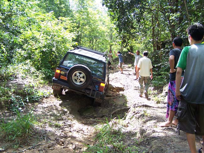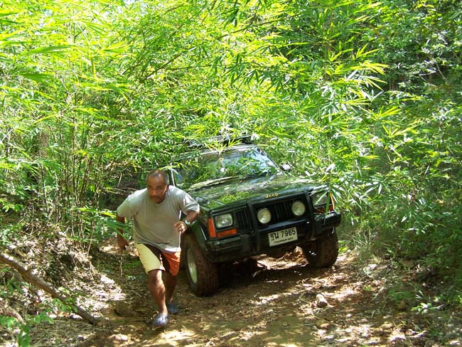 มีห้วยเล็กๆ ให้ล้างล้อนิดหน่อย... นั่นไง VIGO ยาง HT เพิ่งเปลี่ยนจากป้ายแดงมาได้ไม่ถึงเดือน เจ้...พามารับน้องในดงไผ่ซะแระ