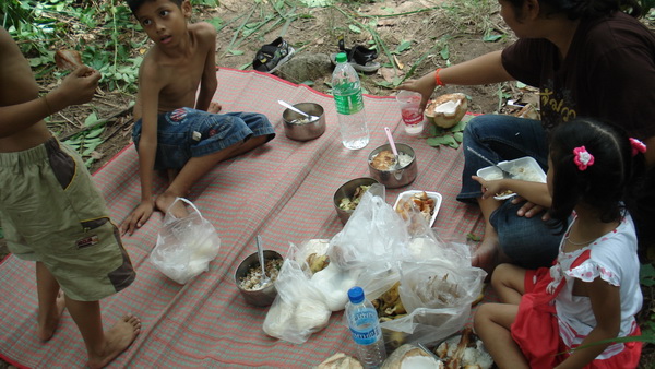 ในระหว่างที่พ่อและพวกลุงกำลังซ่อมเจ้ากระทิงแดงอยู่เด็กๆก็สนุกอยู่กับอาหารมื้อเที่ยง เราใช้เวลาในการซ่อมประมาณ 3 ชม. เพราะมีฝนยตกลงมานิดหน่อย