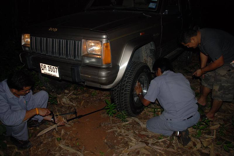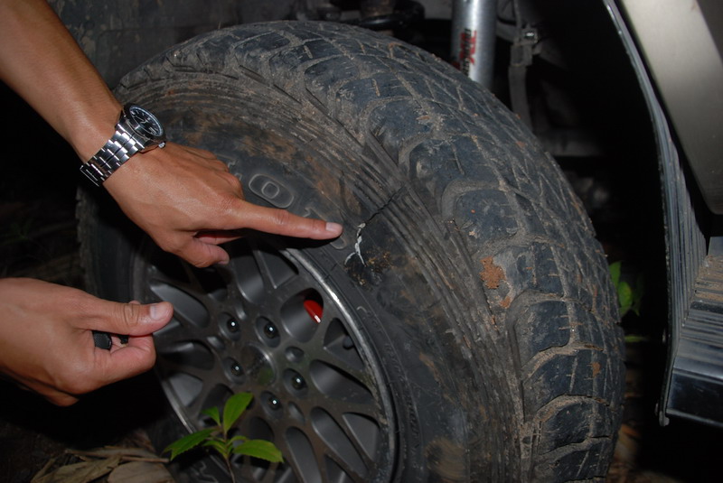 รถพี่ต้อม ก็อยู่ในสภาพที่เห็น ต้องกู้ภัยในป่ากันตอนมืด งานนี้เลยน่าจะได้ยางชุดใหม่