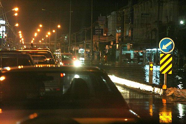 เมื่อคืนนี้แถวๆ ตลาดทางไป ร่มโพธิ บางบัวทอง รถติดมากๆ น้ำท่วมถนนคับ