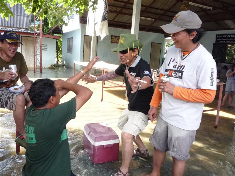 เรา ต้องแสดงความบริสุทธิใจด้วยการย่ำอยู่กับที่ เพื่อแสดงว่าเราไม่ลืม ว่าพี่ๆน้าๆได้ช่วยเหลือมา..เพื่อพี่น้องที่ประสพภัยน้ำท่วม อ้าวแล้วจะไม่ งง หรอ...ไม่ครับ ผมกลับคิดว่าเพราะพี่ๆน้าๆมากกว่า.....เราไม่ได้อยู่คนเดียวแล้ว เมื่อเงินจากที่ต่างๆไหลเข้ามา เพื่อมอบให้พวกเรานำไปจัดซื้อ ...นั้นต่างหาก ที่น่าคิด และนั้นต่างหากที่เราจะไปด้วยกันต่อไปที่เราต้องคิด.....เมื่อพี่และน้ามอบใจให้เรา.........เราก็กราบขอบพระคุณ
