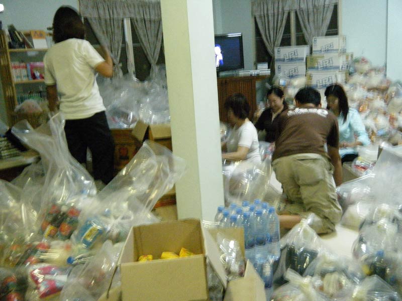 เราเริ่ม ระดมทุน และข้าวของเพื่อบรรจุถุงยังชีพให้ได450 ชุด กำนันขอมา 500 ครับโดย นำใส่รถพวกเราเองไปจนน้ำท่วมล้อ แล้วลงเรือที่กำนันจัดมารับ ไปมอบให้ผู้เดือดร้อนกับมือ