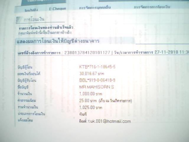 น้องไพรัช และพี่สงครามโอนแล้วนะคร๊าบบบ...(27-11-10 1,000B.)