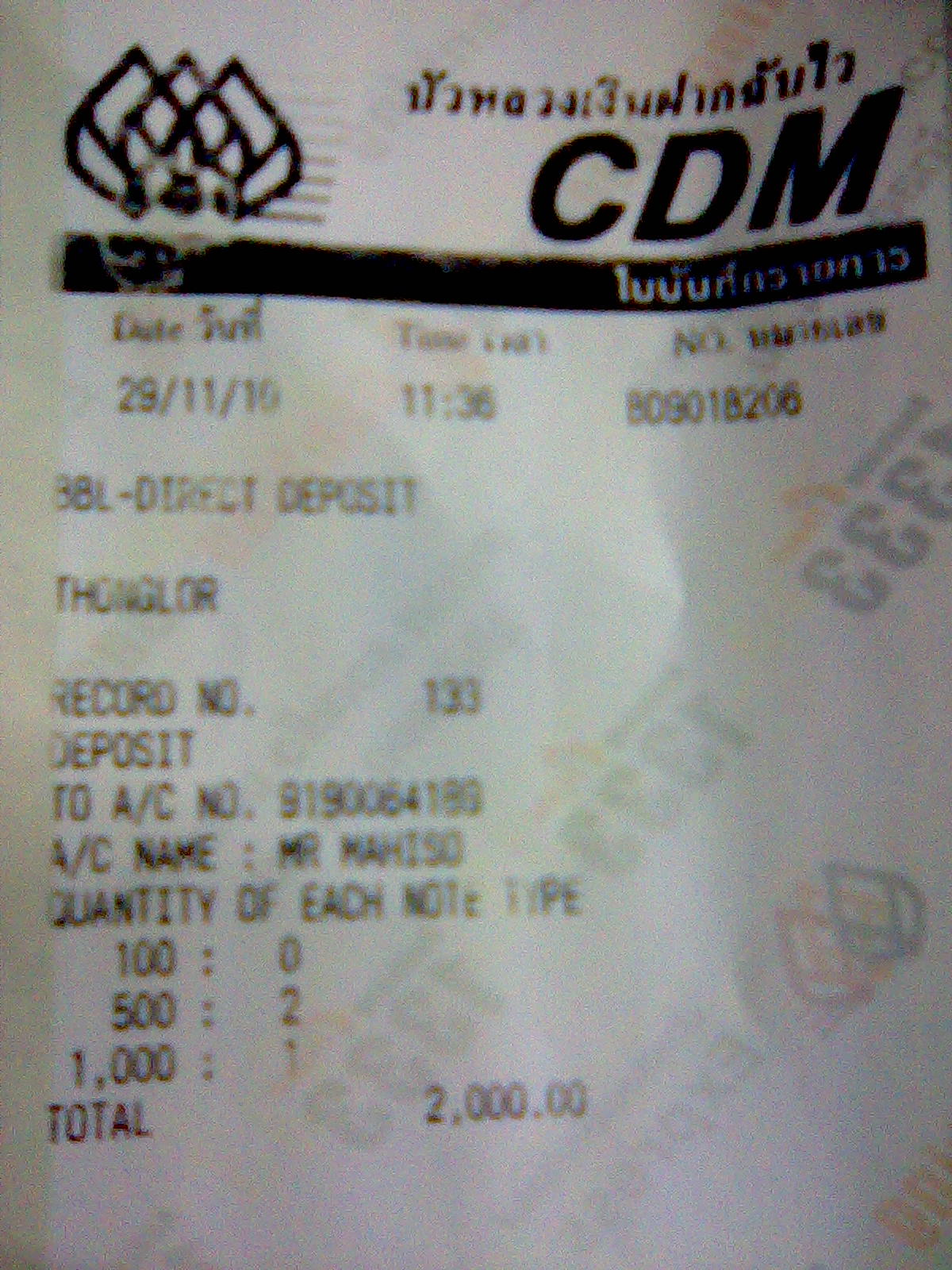 ....วันนี้โอนเงินเข้าบัญชีป๋าเงาะ 500 บาทแล้วเด๊อ..เวลา13.57\/29/11/10