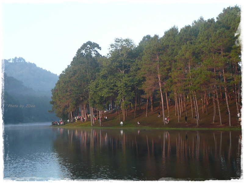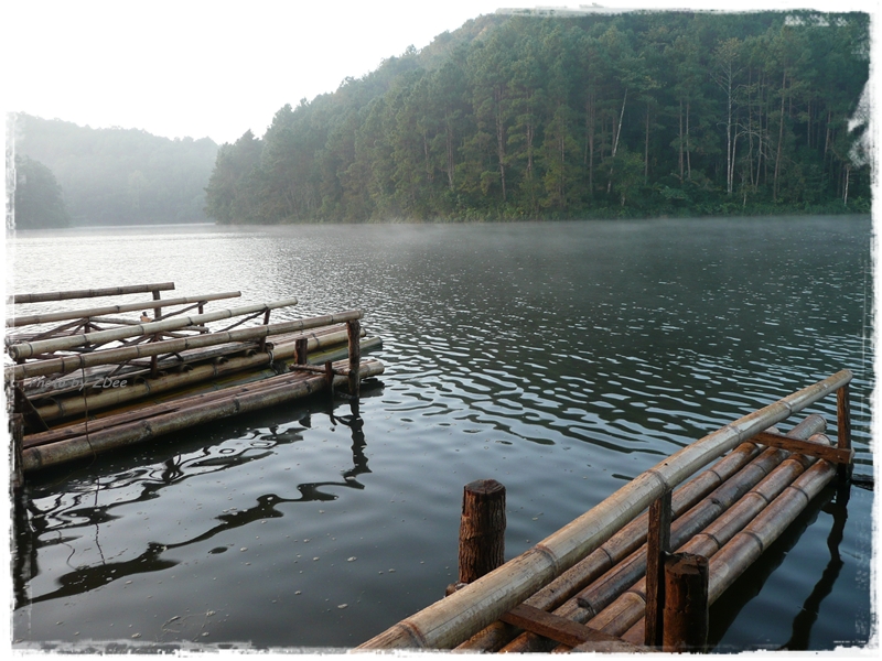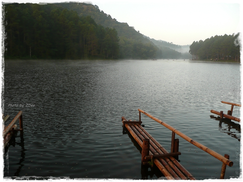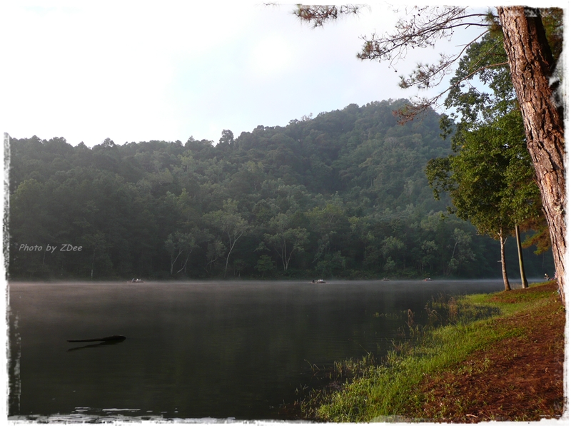 เสน่ที่สำคัญที่สุดของปางอุ๋งคือ ตอนเช้าจะมีหมอกลอยไหลอยู่บนผิวน้ำ สำหรับกล้อง compact ที่ผมใช้จะมองเห็นได้นิดหน่อย สังเกตกันดีๆ อิอิ....ถ้าเป็นกล้อง DSLR จะแหล่มกว่านี้เยอะครับ