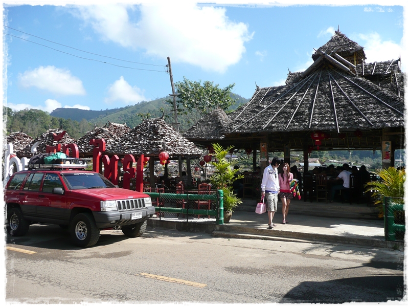 ออกจากปางอุ๋งย้อนไปหมู่บ้านรักไทยประมาณ 10 กิโล เพื่อไปชิมชาหอมๆ และ ขาหมูหมั่นโถอันลือลั่น