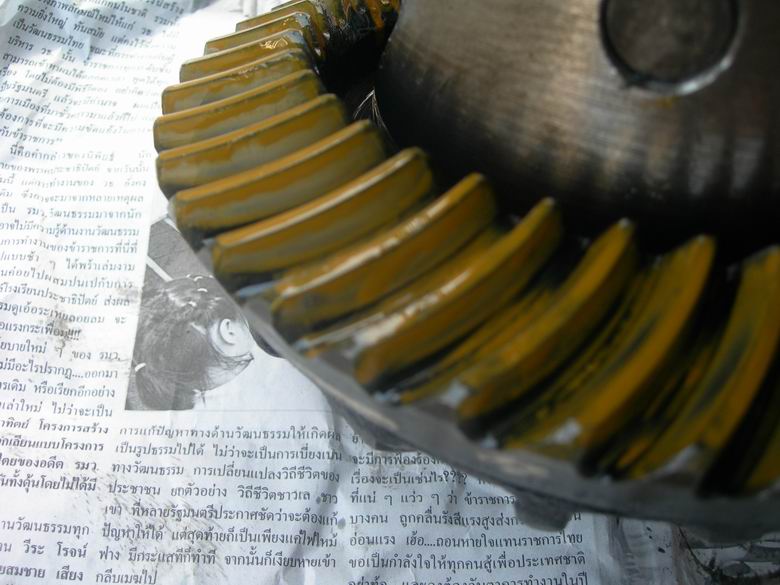 ทดสอบด้วยสีเสน เพื่อดูการสัมผัสของเฟืองบายสี-เดือยหมู