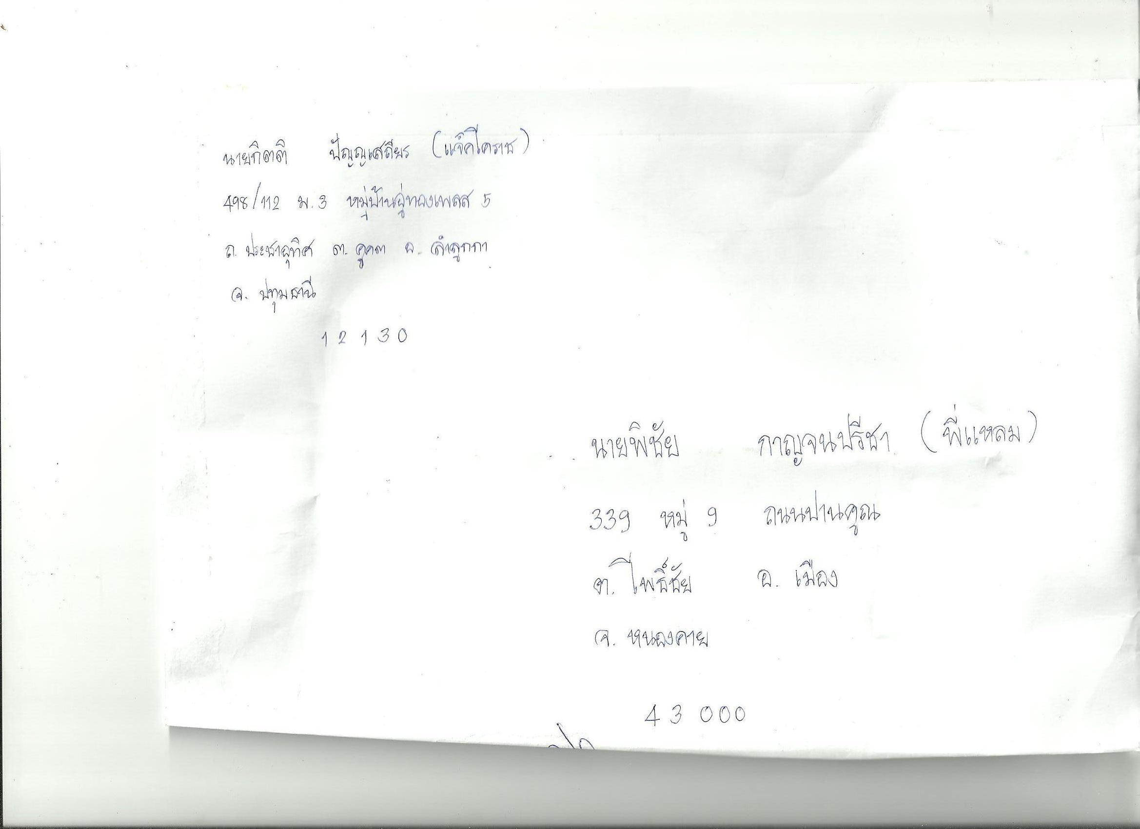 1. วัฒน์ มีเตาแก๊ส หลอดไฟใหญ่(ไม่มี Invertor) เครื่องครัว น้ำ 1 ถังใหญ่ ใส้ตัน 2 กก.