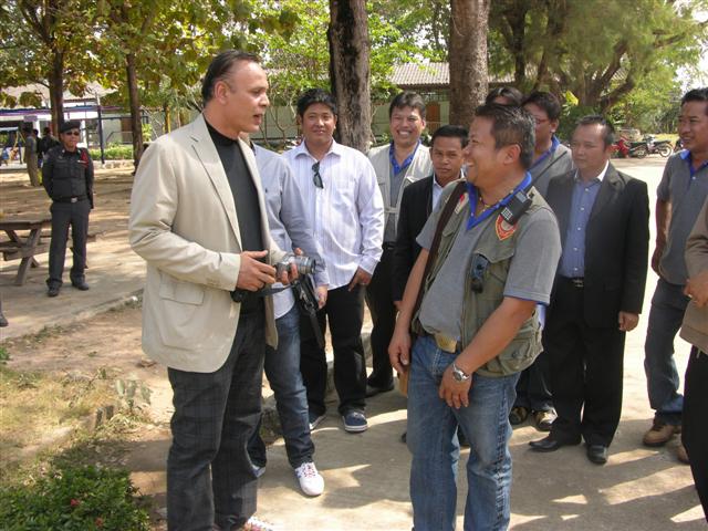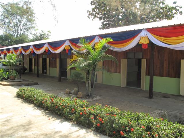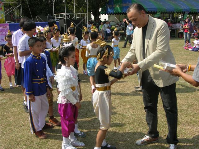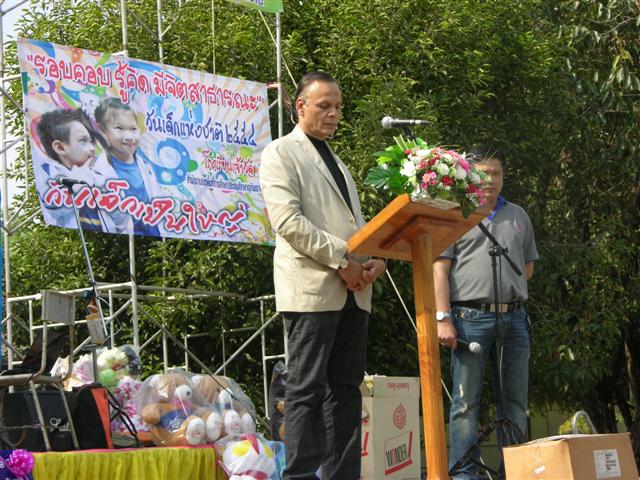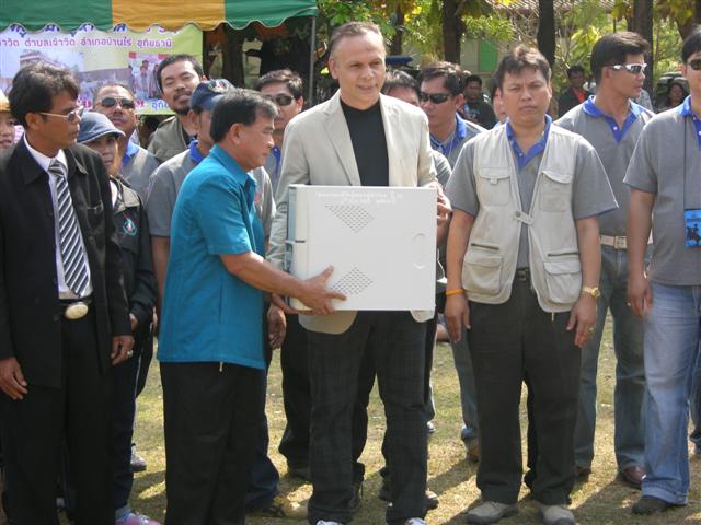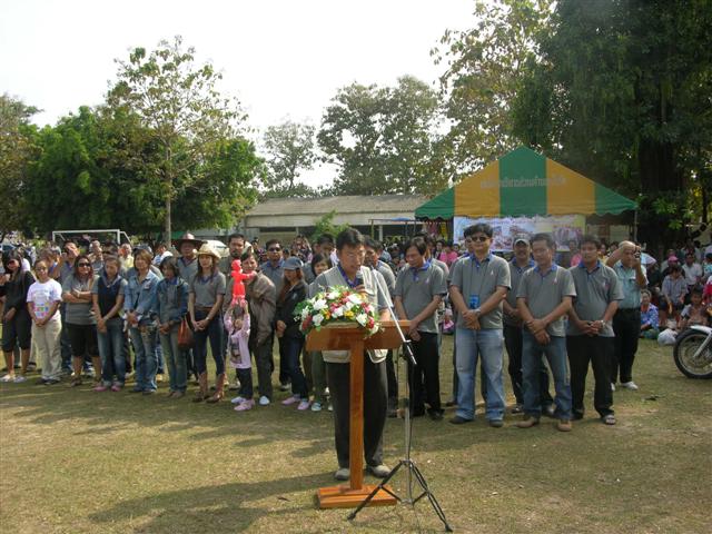 ประธานในพิธีมอบอาคารเรียน..โครงการธารน้ำใจสู่ชนบทผู้ห่างไกล ปี 54 ขึ้นบนเวทีรับฟังการกล่าวรายงานการดำเนินกิจกรรมโครงการฯ..ทั้งหมด 14 ปี คือ