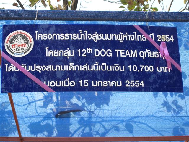 กลุ่ม 12th DOG TEAM ร่วมกับทีมงานโอสถสภา จำกัด ได้จัดกิจกรรมงานวันเด็กแก่เด็กๆศูนย์พัฒนาเด็กเล็กบ้านภูบนบน อำเภอห้วยคต จังหวัดอุทัยธานี เมื่อวันที่ 13 - 14 มกราคม 2544 มอบอุปกรณ์การศึกษา,ของเด็กเล่น ,ขนมแจกเด็กๆ