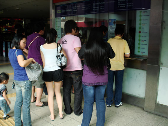 สถานนีนี้คนเยอะครับ ยืนต่อแถวซื้อตั๋ว....ไม่มีเครื่องหยอดเหรียญ