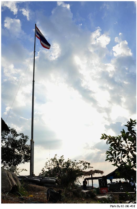 ธงชาติที่เขากระโจม ในรูปมีจุดขายของที่ระลึกด้วย