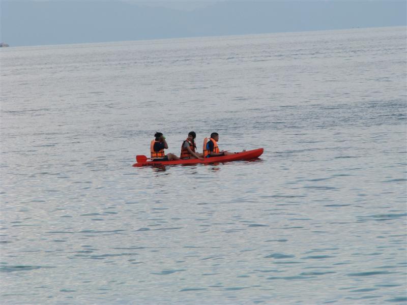 ใกล้ค่ำได้เห็นคนตกปลาและหมึกด้วยเรือคายัค