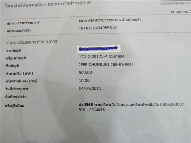 ขอแก้เป็นเข้าบัญชีจี๊ปชลบุรี กสิกรครับ ขอบคุณ