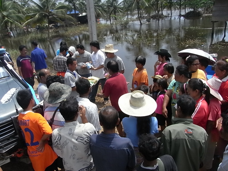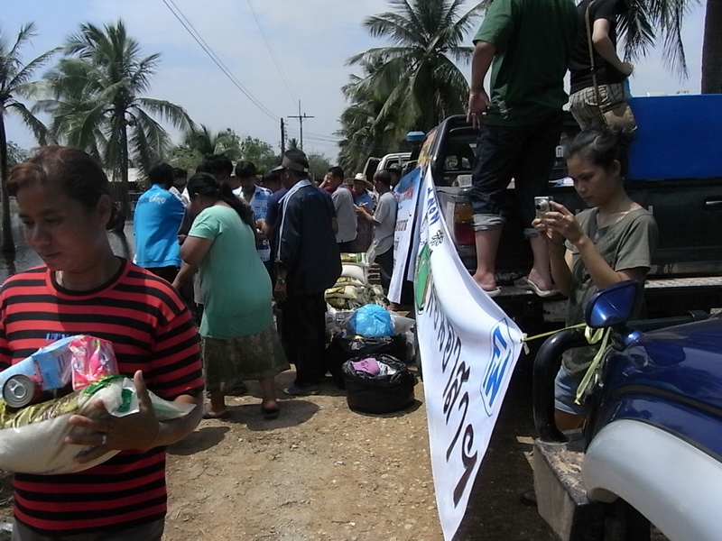 บรรยากาศแจกของให้กับชาวบ้านที่ถูกน้ำท่วม