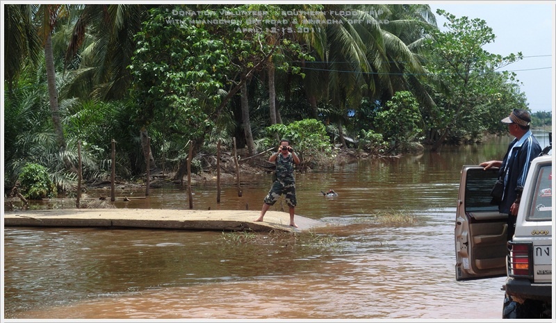ไปถึงวันแรก เข้าบ้านไม่ได้ต้องนั่งเรือเข้าไป และรออีกสองวัน น้ำลด จึงจะน้ำรถเข้าพื้นที่ได้
