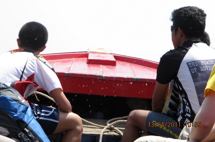 ตอนน้ำขึ้น เรานั่งเรือไปดูจุดบ่อน้ำจืดว่าอยู่ในทะเลจริงหรือเปล่า