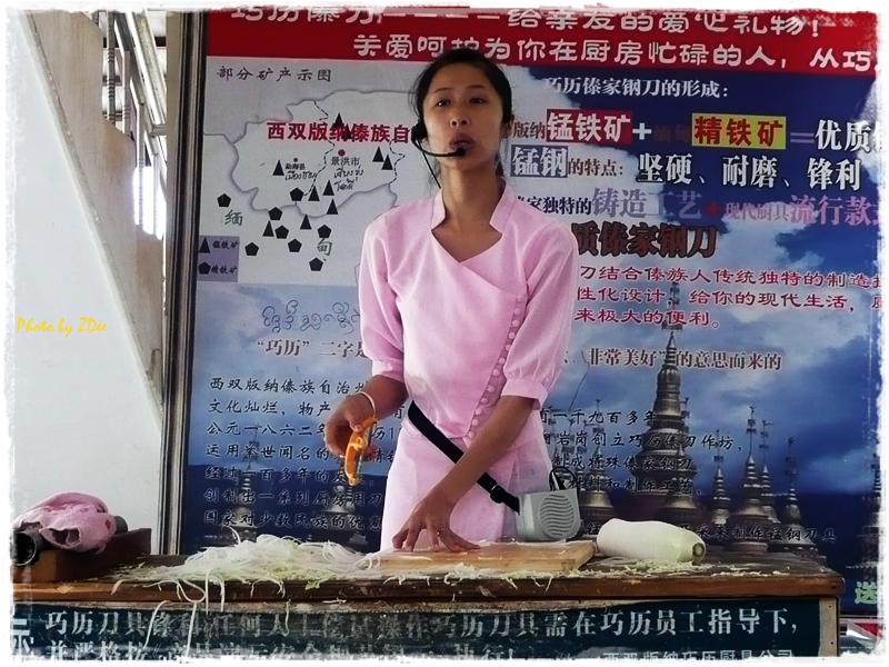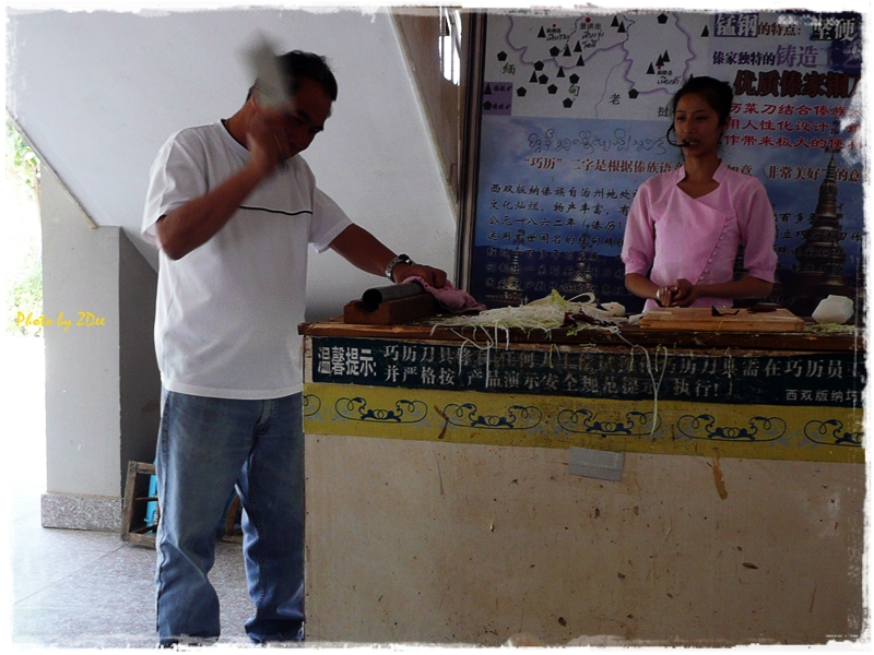 ช่วงบ่ายไปชมกลุ่มบ้านไทลื้อ อันนี้สาธิตการใช้มีดไทลื้อ