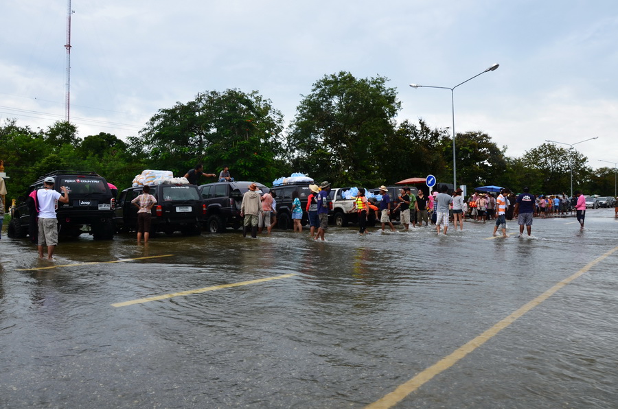 ** เนื่องจากเรือที่จะเข้าพื้นที่จะเข้าพื้นที่แจกของ มีอยู่ 3 ลำที่เป็นท้องแบน รวมคนและของแล้ว น่าจะพาสมาชิกไปได้ไม่มาก จึงมีความเห็นว่า เพื่อเป็นการค่าเวลาระหว่างรอพลพรรคที่ไปแจกของ ก็จะขึ้นไปชมวิวเมืองอุทัยที่กำลังน้ำท่วม + ไหว้พระกันบนยอดเขา ไปดูจุดที่เป็นตำนานของประเพณีตักบาตรเทโวกัน บนนั้นคาดว่าจะมีอาหารขาย ถ้าบ้านคนขายน้ำไม่ท่วม จึงเรียนมาเพื่อสมาชิกทราบ และลงรายชื่อร่วมขบวน เพื่อการจัดกำลังที่เหมาะสมครับผม