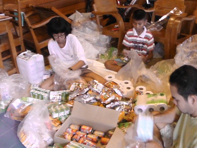 6.พ่อแฮ้งค์และเพื่อน บริจาคขนมปังโฮมมี่ 800 ห่อ,น้ำผลไม้กรีนเมท 240 กระป๋อง,มาม่า 150 ซอง ผ้าอนามัย 30 ห่อ,กระดาษทิชชู 36 ม้วน,น้ำดื่ม 4 แพ็ค,ยาทากันยุง 48 ,โอวันติน 48 กล่อง,ถุงดำ 4 แพ็ค พาราเตามอล 1 กล่อง,ยาทาแก้คันคาลาไมน์ 24 ขวด