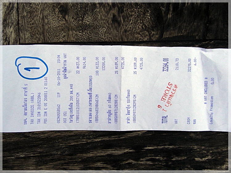 บิลที่1 : ซื้อของที่แม็กโคร มาม่า นมสด ปลากระป๋อง 32,264.00 บาท