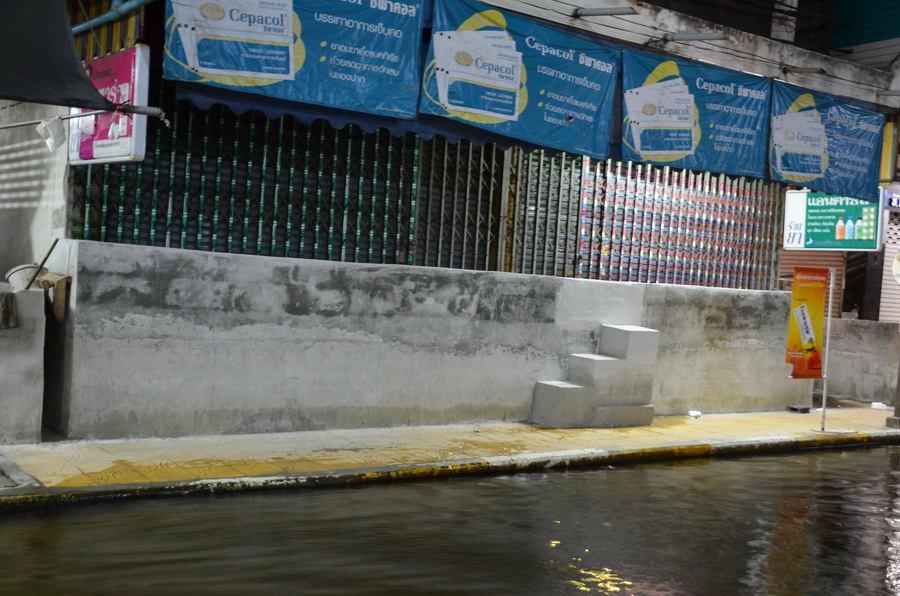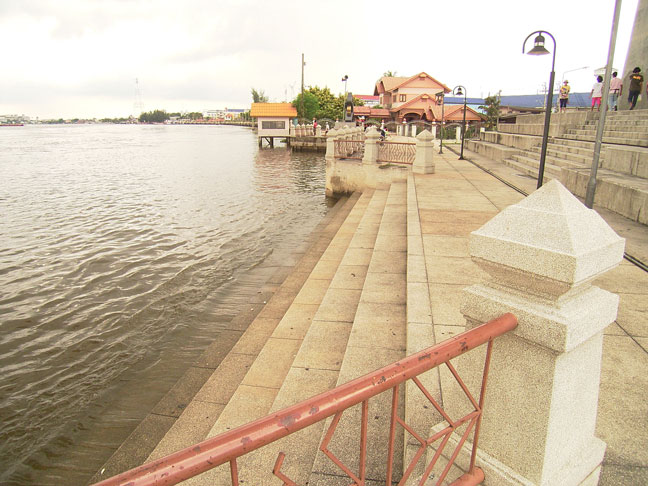 ระดับน้ำ ส่วนตัวผมว่าไม่สูงจนดูน่ากลัวนะตรงนี้ ผมพาคุณแม่มานั่งเล่นที่ปากคลองลัดโพธิ์นี้เป็นประจำ จะเห็นระดับน้ำจุดนี้บ่อยๆ ผมว่าช่วงลอยกระทงยังดูสูงกว่าเลย น่าจะ(คิดเองนะ) เป็นเพราะน้ำตรงนี้ดูสูงหรือไม่นั้น น่าจะขึ้นอยู่กับการหนุนของน้ำทะเลซะมากกว่า