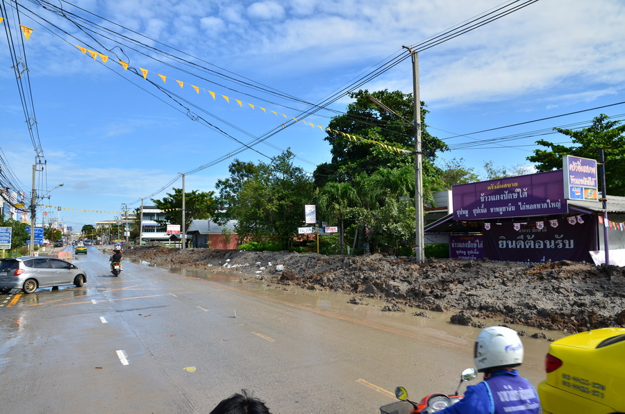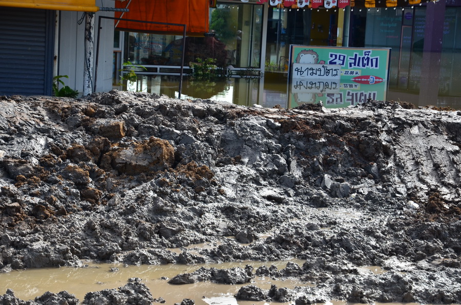 น้ำยังเข้าไม่ได้.....รถที่ไหนจะเข้าไป.....ทางเข้า รถผมยก 9 นิ้ว น้ำ ติดท้องพอดี..........
