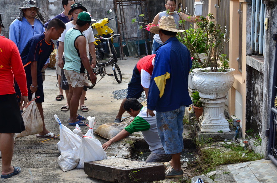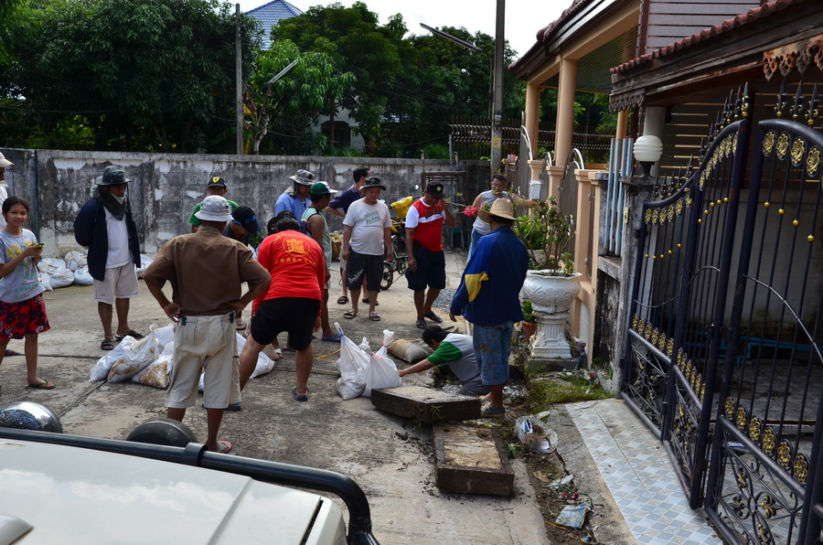 วันนี้ ระดม อุดน้ำ ตามท่อระบายน้ำ ที่ดันย้อนเข้ามา ทุกทางออก หมู่บ้าน ร่มโพธ์ จะเป็นหมู่บ้านสุดท้ายที่ท่วม