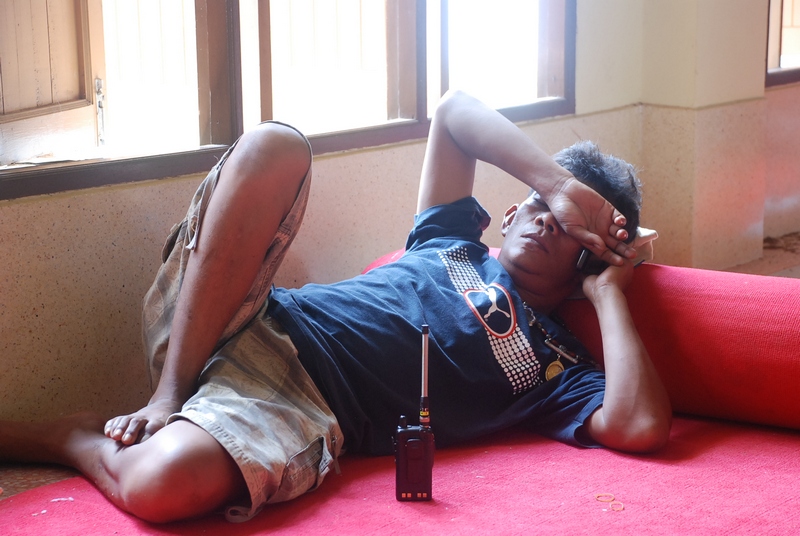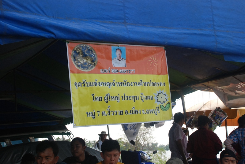อีกจุดที่เราแวะ ผู้ใหญ่บ้านกำลังประกาศเชิญชาวบ้าน