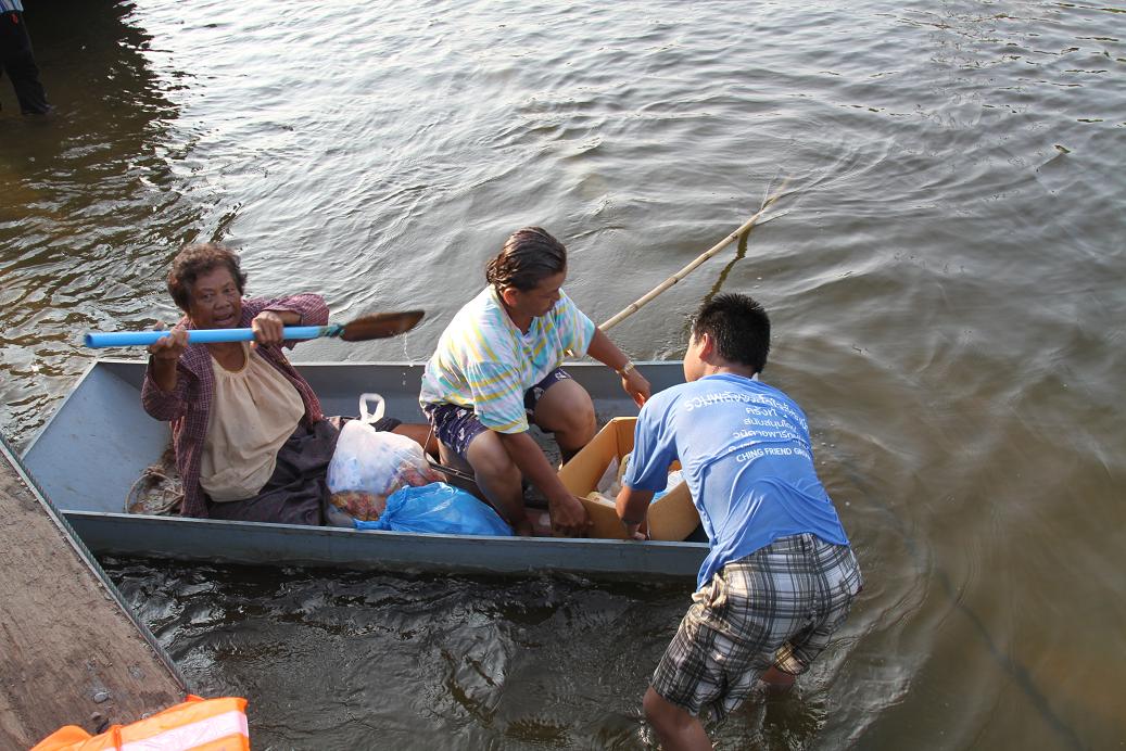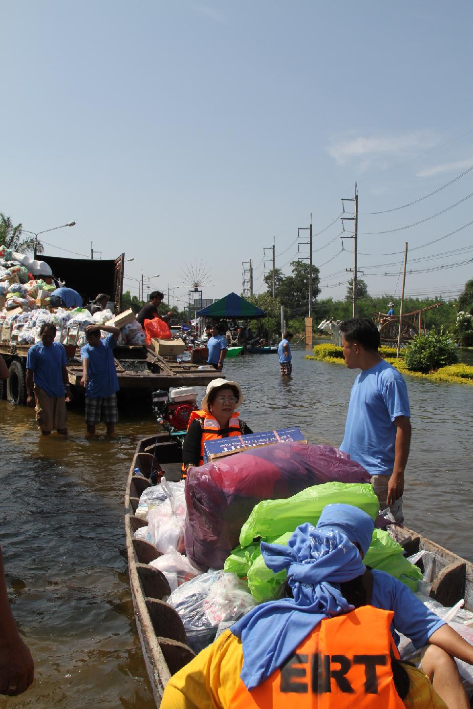 ขนถ่ายชุดยังชีพลงเรือเร็ว ไปเยี่ยมชาวบ้าน