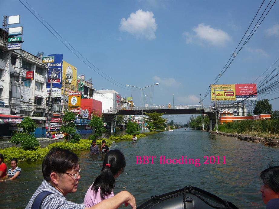 น้ำในถนน bbt ยังเชี่ยวครับ เพราะเค้าเปิดคันกั้นให้น้ำใหลข้ามถนนรัตนาธิเบทไปอีกฝั่งถนน