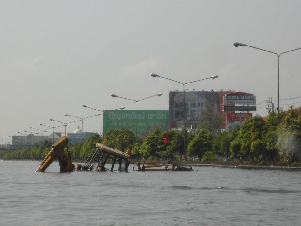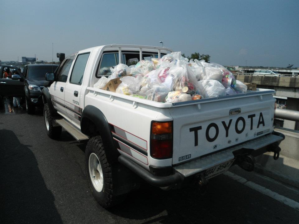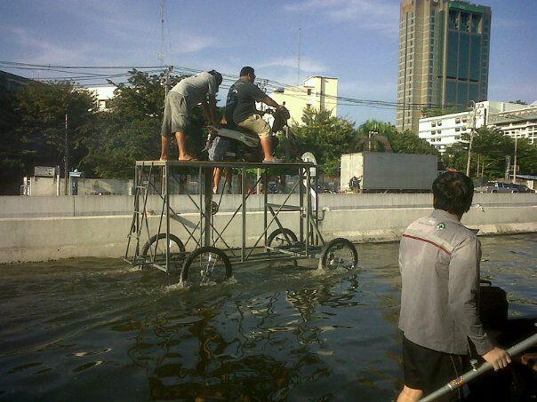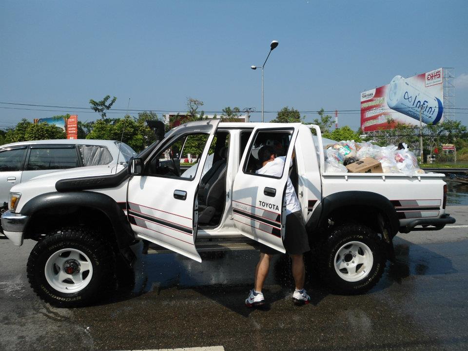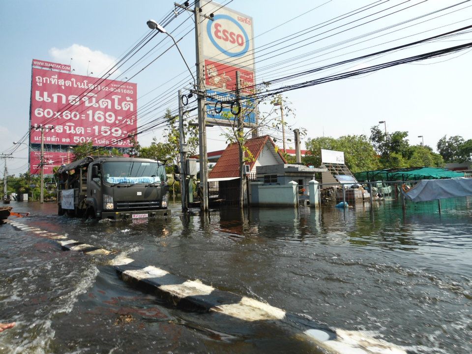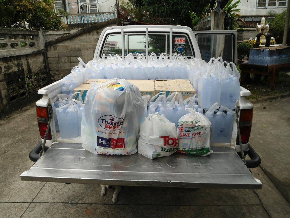 น้ำเข้ามาถึงในกระบะเลย ดีที่วางน้ำดื่มไว้ชั้นล่าง ของบริจาคเลยไม่เสียหาย