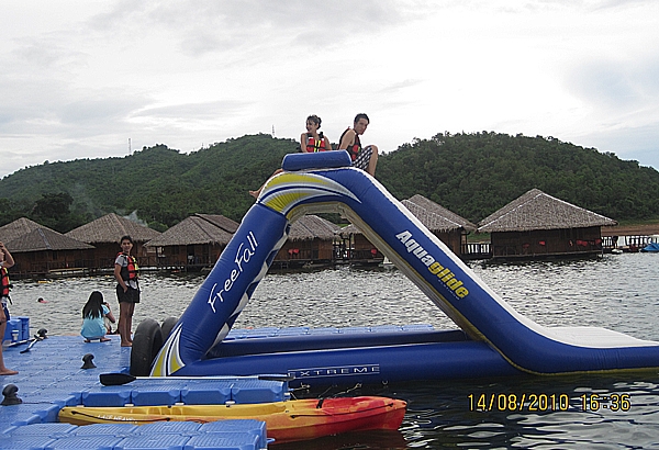 พี่แหลม สนใจเปล่า เมืองกาญ พาเด็กไปเล่นน้ำ ผู้ใหญ่ก็มาว บนแพ