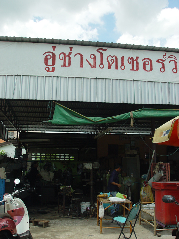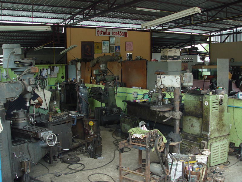 โรงกลึงที่ทำก็ใกล้บ้านนี่แหละครับ ขี่จักรยาน หรือเดินไปได้ เคยไปหลายโรงกลึง บางที่งานเล็กเขาไม่ทำ หรือ ทำลักไก่ก็มี เช่นน๊อตที่เราเอาไปกลึงแข็งไป ลักไก่ไปหาน๊อตออกมากลึงให้ หรือบางที่ทำอย่างตอนเสร็จออกมาอีกอย่างก็มี