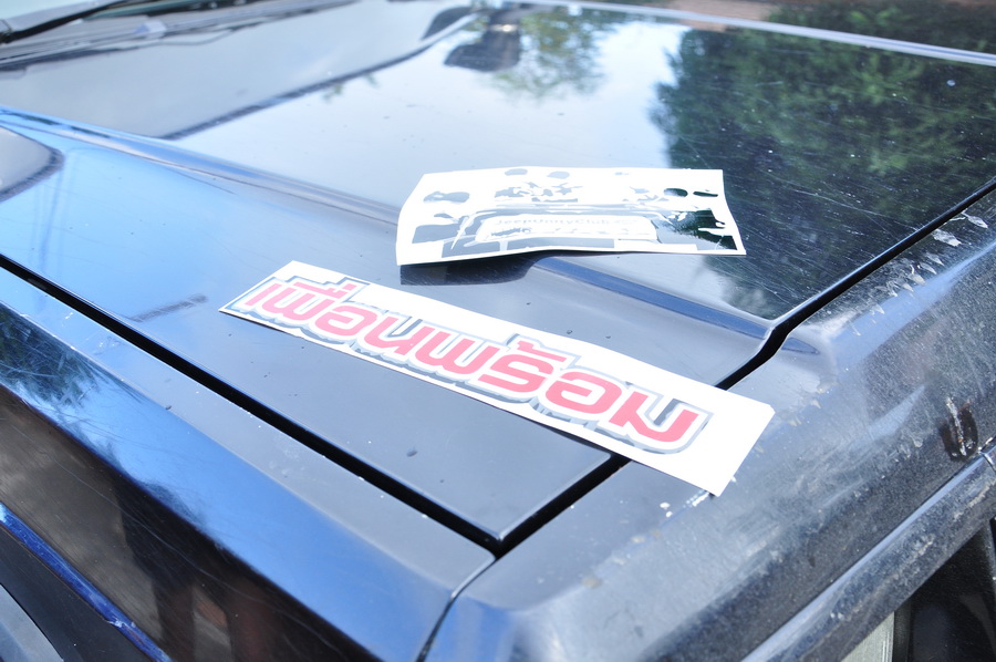 เน้นเข้าไว้ตัวปะกิดขาว ๆ โลโก้แดง ๆ จะได้มียางอะไหล่ห้อยท้ายเร็ว ๆ