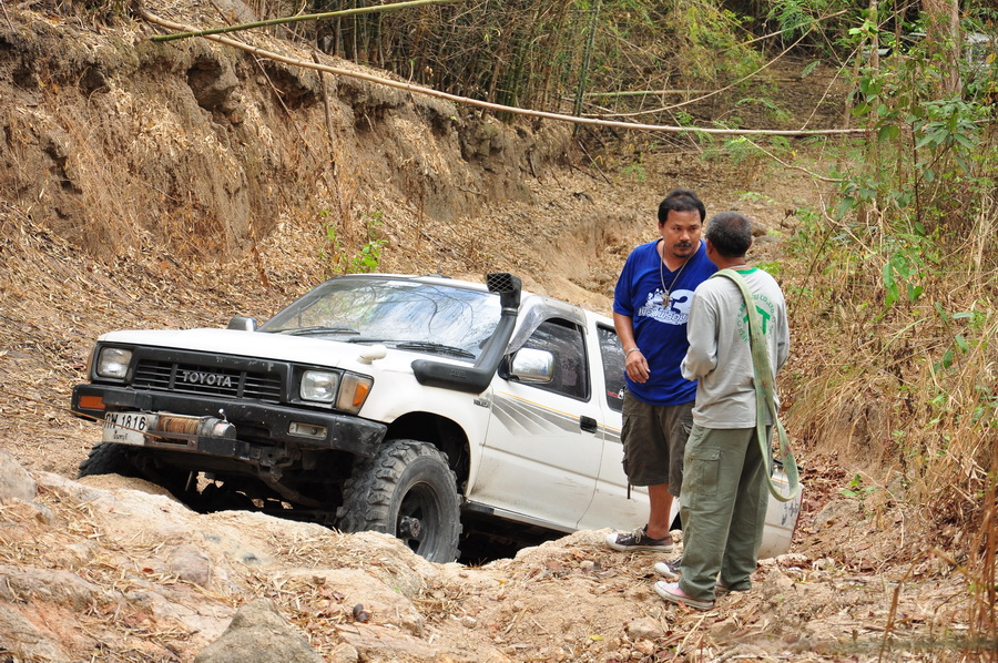 อย่างนี้เองเมื่อวันอาทิตย์ตื่นขึ้นมาเจอหมูไก่วางอยู่ข้างหน้าเต็มเลย เปลี่ยนเส้นนี้ยอมรับสภาพเพราะวิ่งแช่น้ำขับ 4Lตลอดเวลาช่วงน้ำท่วม แถมมุมเพลาหน้าหักมากเกินไป