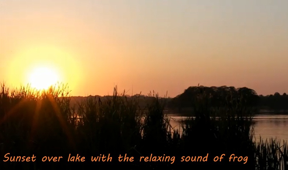 ผ่อนคลายกับฉากธรรมชาติ:พระอาทิตย์ตกเหนือผิวน้ำตามด้วยเสียงร้องของจิ้งหรีด และกบ.