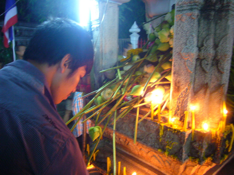 เวียนเทียนรอบโบส3รอบ เสร็จแล้ววางดอกบัวกับปักเทียน ตอนเดินรอบโบส เทียนดับตั้งหลายหน มองหาสาวๆที่มาเป็นกลุ่มขอต่อเทียน แต่ได้เบอร์โทรมา1เบอร์อิอิ