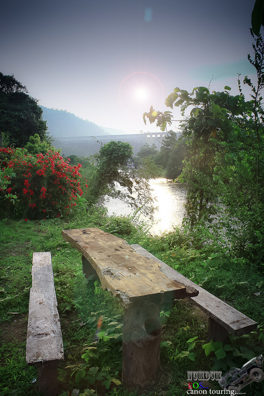 มีที่นั่งดริ้งยกแก้วยามแดดร่มลมตกและลำธาร...ปล่อยน้ำจากท้ายเขื่อนขุนด่าน...มีน้ำตลอกทั้งปี...