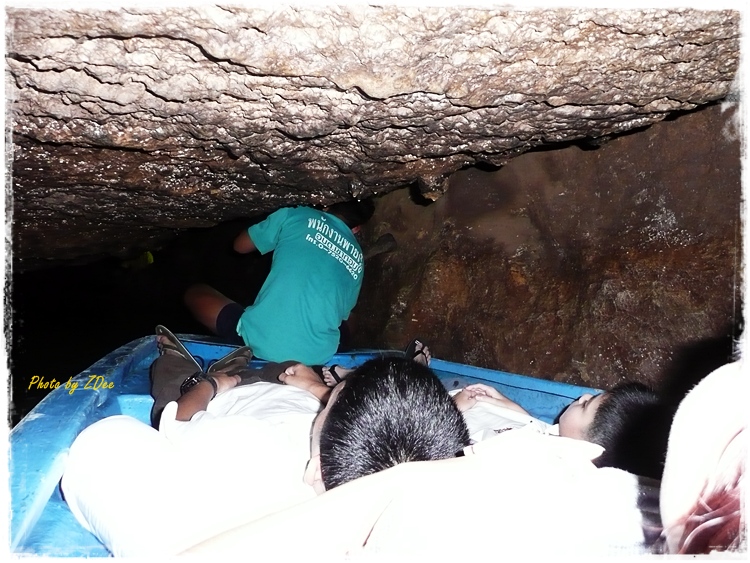 จัดที่นอนกันใหม่ให้ลงตัว เพราะจะเริ่มลอดเรือเข้าปากมังกรในระยะ 300 เมตรต่อไปนี้ จนกว่าจะออกถ้ำ