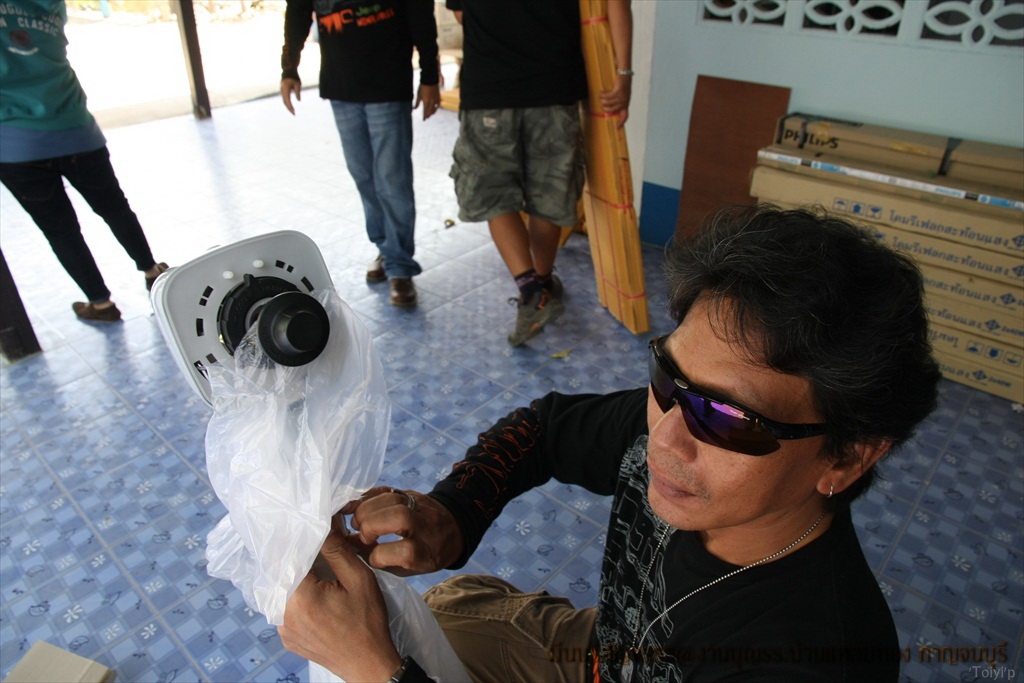 ถึงโรงเรียนก็เข้าสำรวจห้อง จุดติดตั้งโคมไฟเลย เดี๋ยวจะเลยเวลาไปมาก