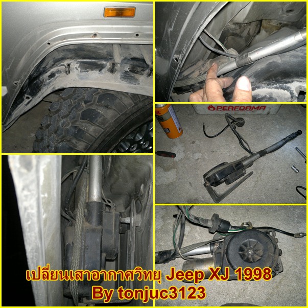 เริ่มรื้อกันตามรูปเลยคับ ก่อนเอาเสาอากาศออก อย่าลืมถอดปลั๊กของเสาอากาศในห้องโดยสารก่อนนะคับ รื้อบังโคลนก็ด้วยความระมัดระวังด้วย ฉีดโซแนคและค่อยๆขันน็อตออกคับ